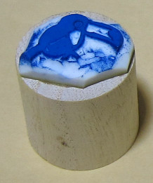 オニオオハシ 2号 オニオオハシの特徴が分かったので,デフォルメしてみました。消しゴムが薄かったので,木片をつけると押しやすくなりました。 |