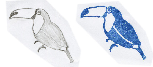オニオオハシ 右が下絵です。写真を見ながら描いてみました。 |