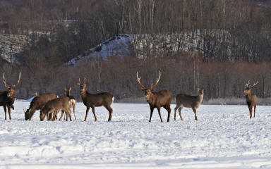 | コメント | エゾシカ(Hokkaido Sika Deer)です。 横で係の人が黒い布を振り回すと,シカだけ逃げていきました。 |