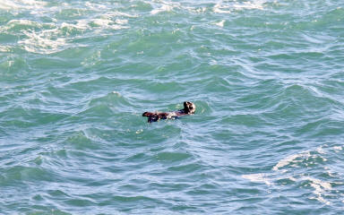 コメント | 顔を洗っている仕草が写っていました。 | コメント | 波があるので,けっこう立ち泳ぎをしていました。 | |