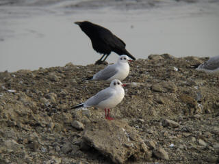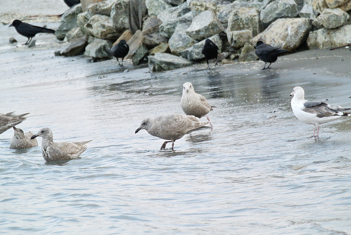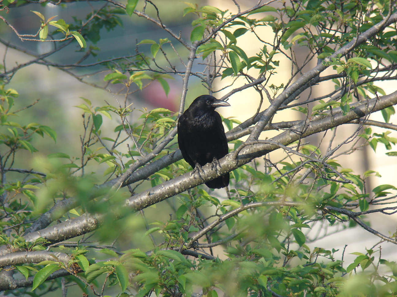 手前の小さいカラスがコクマルガラス。奥2羽はミヤマガラスです。