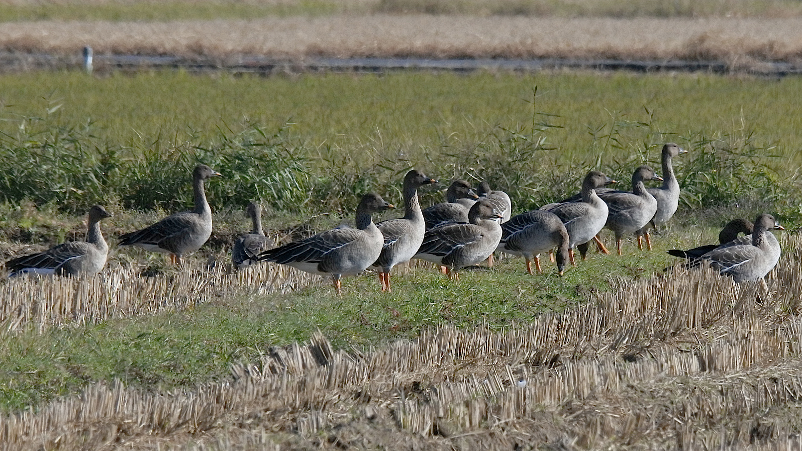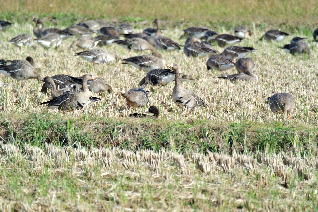この後,マガンと一緒にすぐ隣の田んぼまで飛んだだけなのに見失いました。